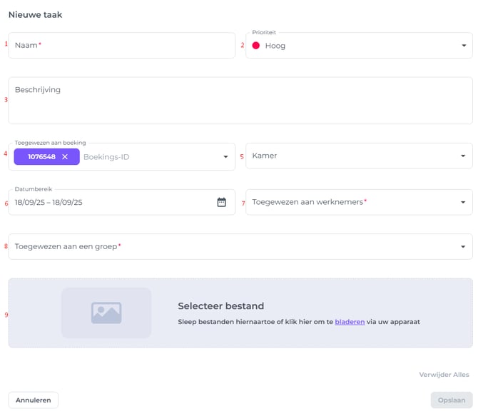 - Selecteer Bestand - Voeg indien relevant bestanden toe aan de taak, zoals afbeeldingen, documenten of instructies. (optioneel)