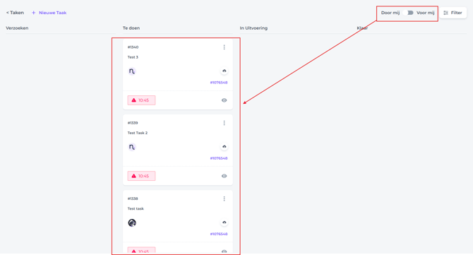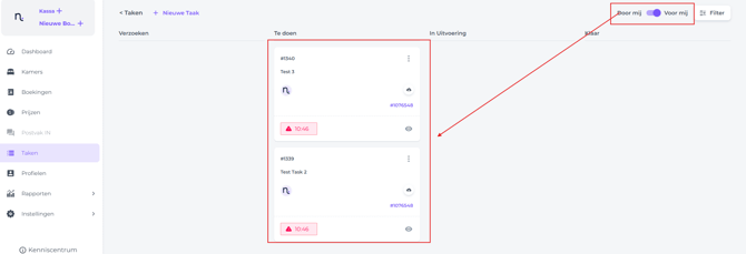 In het taken menu kan je de taken bekijken die jij hebt gemaakt of welke taken voor jouw zijn gemaakt als je de schakelaar omzet:
