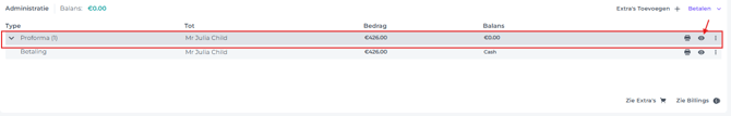 - Klik op de pijl om de betaling te tonen: