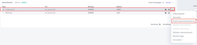 Als dit het geval is, scheid dan de City Tax/toeristenbelasting van de oorspronkelijke Proforma. Dit creëert een nieuwe Proforma waarop alleen de toeristenbelasting staat.