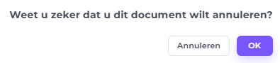 - Als voorzorgsmaatregel zal het systeem je vragen of je zeker weet dat je het document wilt annuleren:
