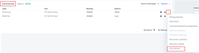 - Annuleer de originele Proforma door op de knop Meer acties (3 puntjes achter de betreffende proforma) te klikken en kies Annuleren: