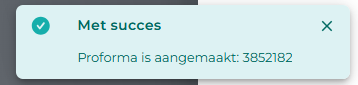 Er verschijnt een tijdelijke melding dat er een nieuwe Proforma is aangemaakt: