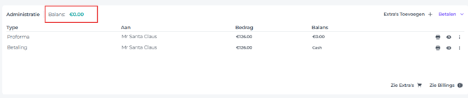 - Nadat de nieuwe Proforma is aangemaakt en de originele is geannuleerd, moet het saldo van de reservering op '0' staan, aangezien het betaalde bedrag in evenwicht moet zijn met de nieuwe Proforma: