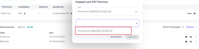- Koppel betalingen aan de nieuwe Proforma