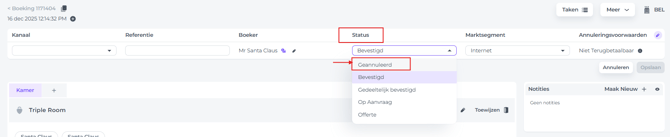 Als de boeking afkomstig is van een OTA zoals Expedia of Booking.com, moet de gast de boeking eerst zelf annuleren via het betreffende platform. De boeking wordt dan automatisch geannuleerd in het PMS, maar dit voorkomt dat het hotel commissie aan de OTA moet betalen.