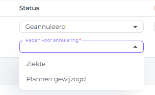 - Als er een annuleringsreden vereist is (volgens de configuratie van je accommodatie in het systeem), kies dan de toepasselijke reden: