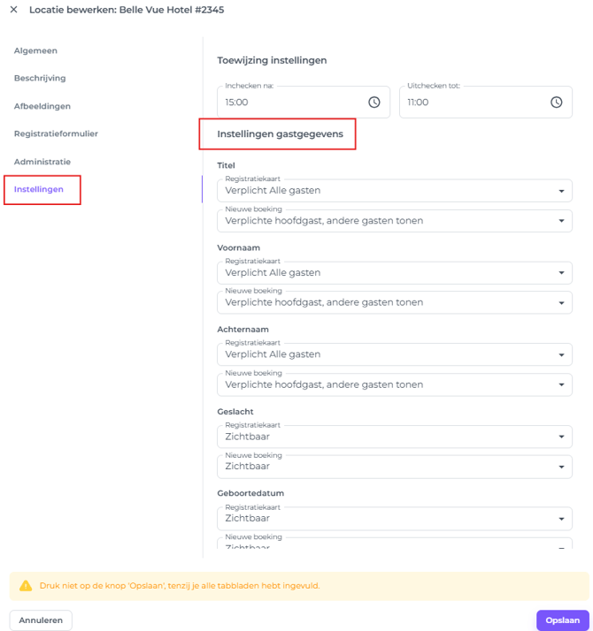 - Verplicht Alle Gasten - Veld verplicht voor alle gasten.