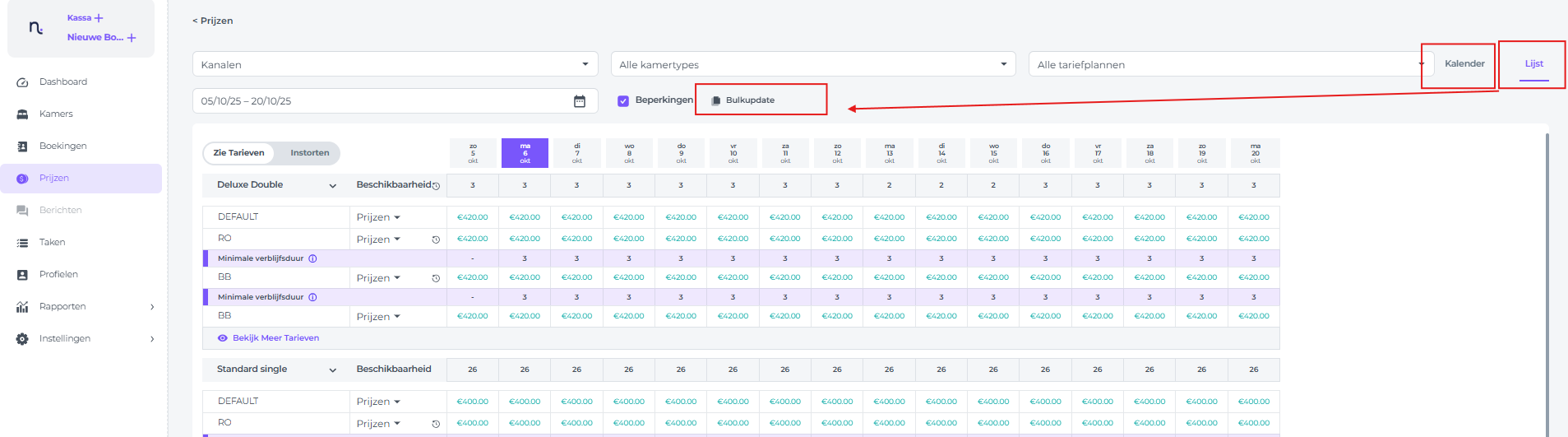 - Klik op de tab Kalender of de tab Lijst en klik op Bulkupdate.