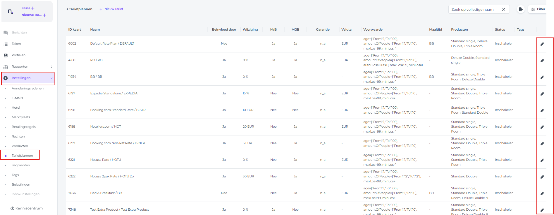 Restricties kan je ook instellen in de tariefplannen zelf, bij Instellingen - Tariefplannen, klik op de pen icoon om te wijzigen.