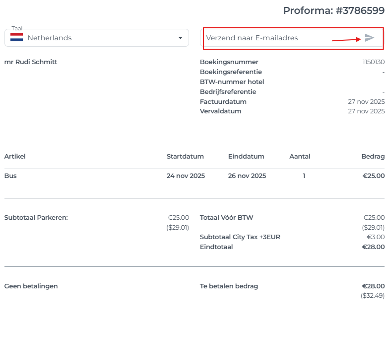 Je kunt facturen snel via email rechtstreeks naar gasten of bedrijven verzenden. Dit stroomlijnt niet alleen je facturatieproces en verhoogt de professionaliteit, maar ondersteunt ook duurzaamheid door papiergebruik te verminderen. Volg deze stappen om te beginnen:
