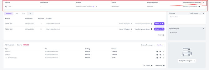 - Open de reservering in de volledige weergavemodus (boekingspagina).