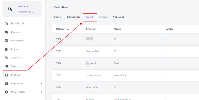 - Navigeer naar de menubalk, klik op Profielen en het tabblad Gebruikers: