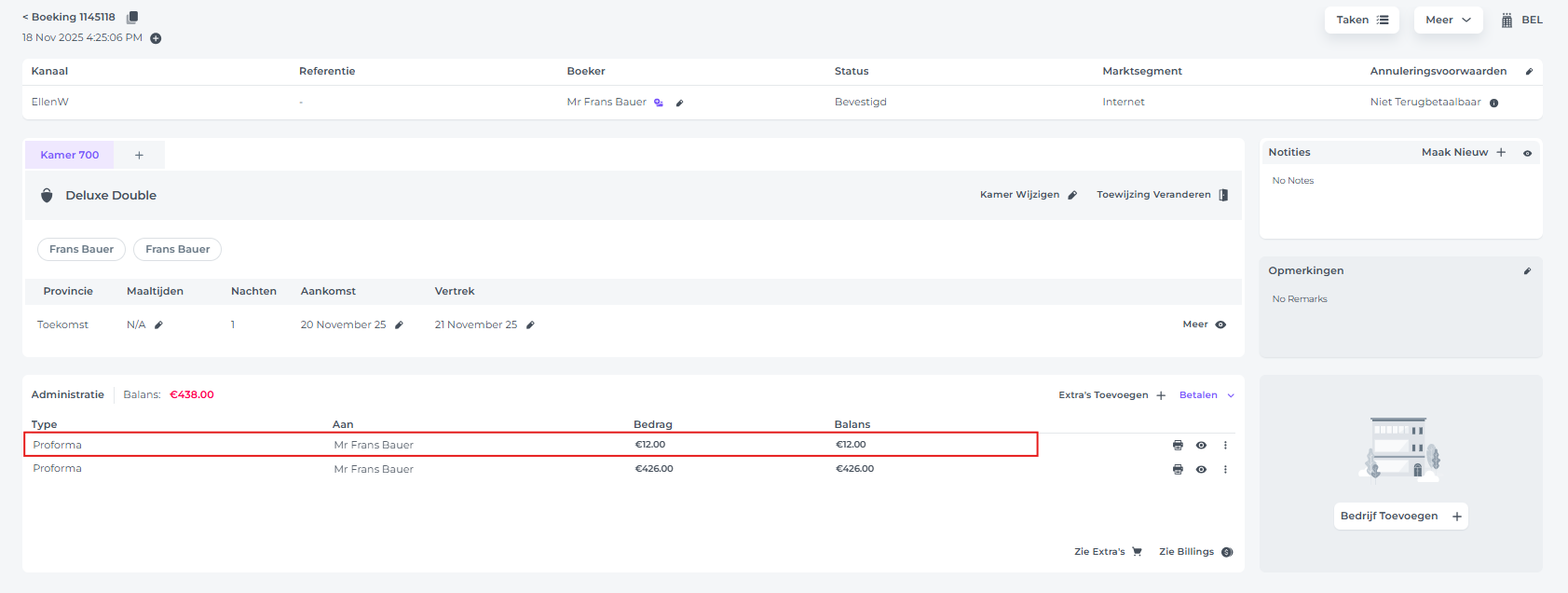 Er zijn situaties waarin je misschien een proforma moet annuleren, zoals wanneer de reserveringsdetails van een veranderen, No Shows verwerkt moeten worden, er over een compensatie is onderhandeld, of om het financiële deel van de boeking opnieuw te organiseren. Volg deze simpele stappen om de Proforma uit je facturatie-overzicht te verwijderen.