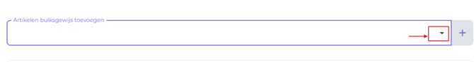 Wanneer je de gewenste methode hebt gekozen, klik je op de + achter het veld voor bulk-update. Dit resulteert in de artikellijst die het overzicht gaat vormen: