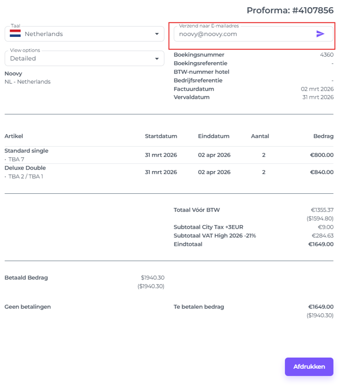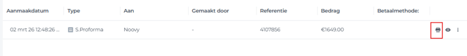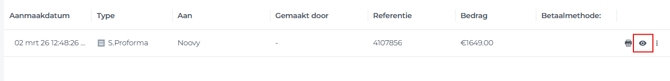 - De proforma wordt gemaakt en verschijnt in het administratie gedeelte: