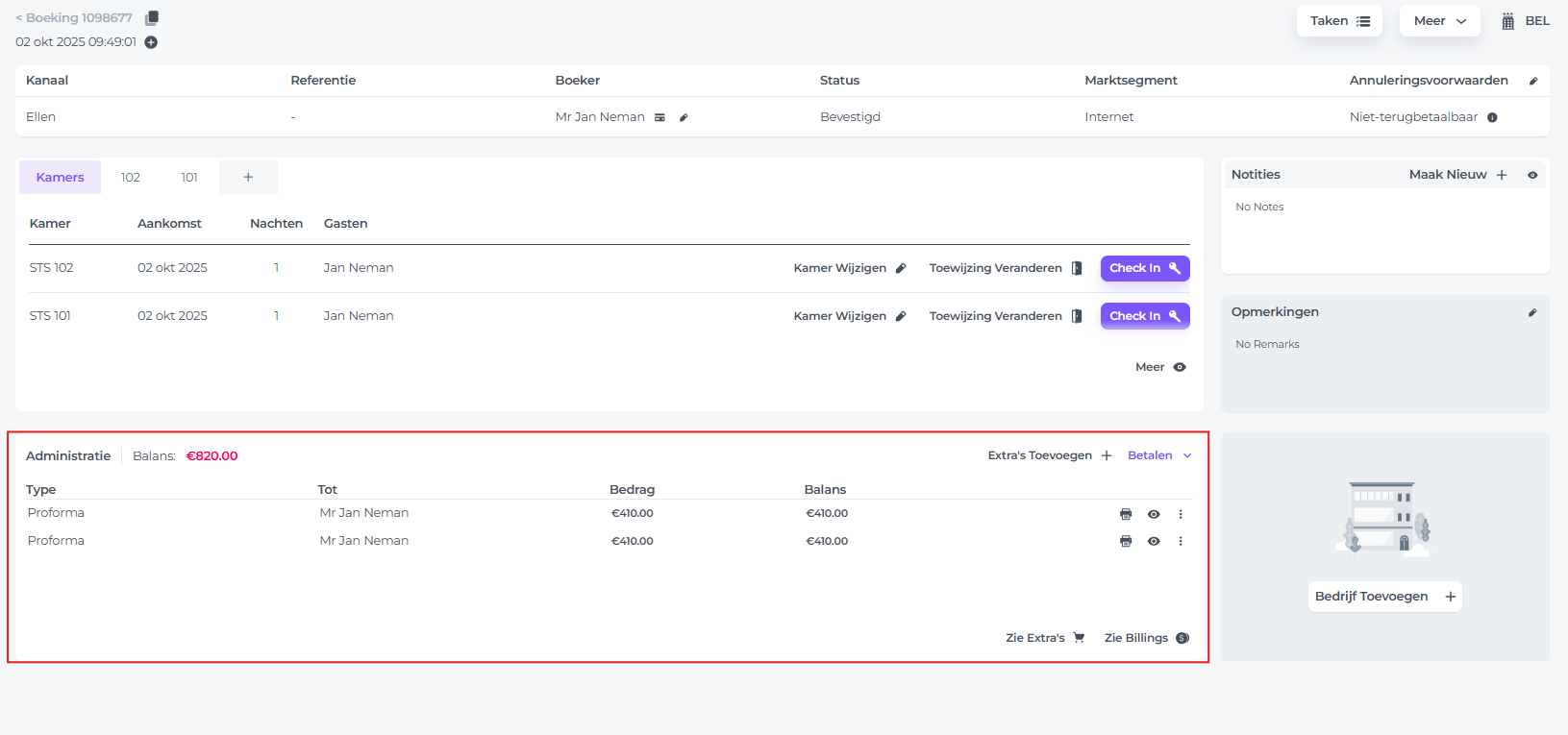 - Ga naar het gedeelte Administratie in de boekingspagina: