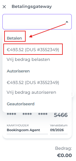 - Vouw het dropdownmenu uit en selecteer de proforma / het te belasten bedrag onder Betalen.