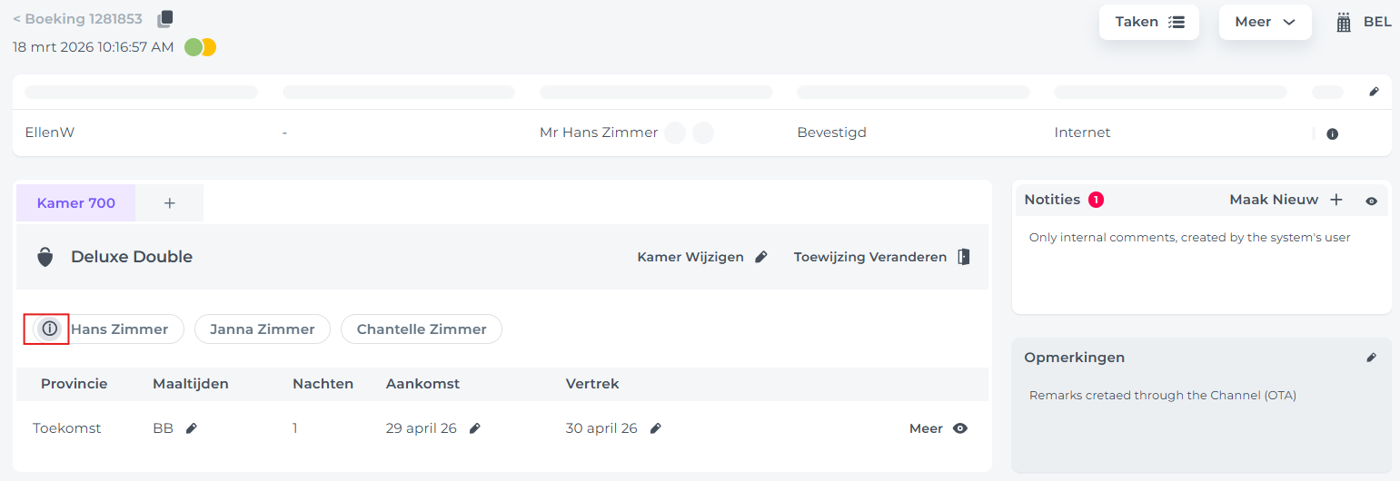 • De volgende stap is het bijwerken van de gastinformatie. Afhankelijk van de instellingen in Noovy (dit is per hotel bepalend) vraagt het systeem om de specifieke gegevens die jij nodig hebt.