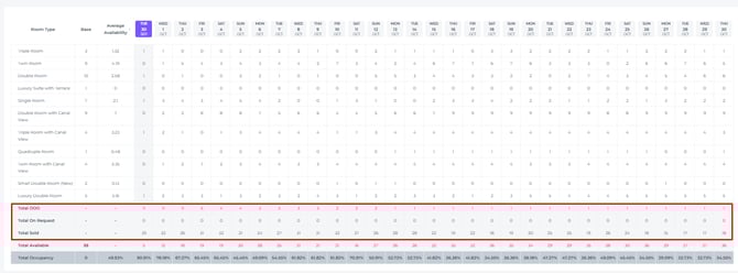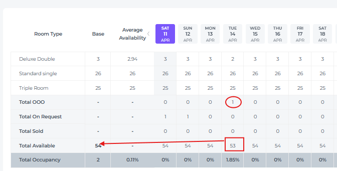 ☝️Please note: Out of Order (OOO) rooms are also shown on the report yet are deducted from your actual inventory. Should you clear the OOO status, these rooms will be restored to your availability for the dates in question.