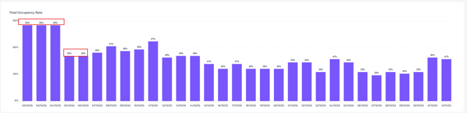 - Trends: The graph helps visualize trends in occupancy over the selected date range.