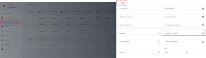 This can be checked if you search for the 'In House' criteria on the specific date in the Booking list Filter: