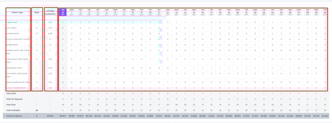 Average Availability: Displays the average availability for each specific room type over the selected period.