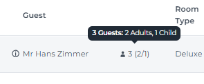 * The number of guests (divided in adults and children will be shown behind the Guest Name: